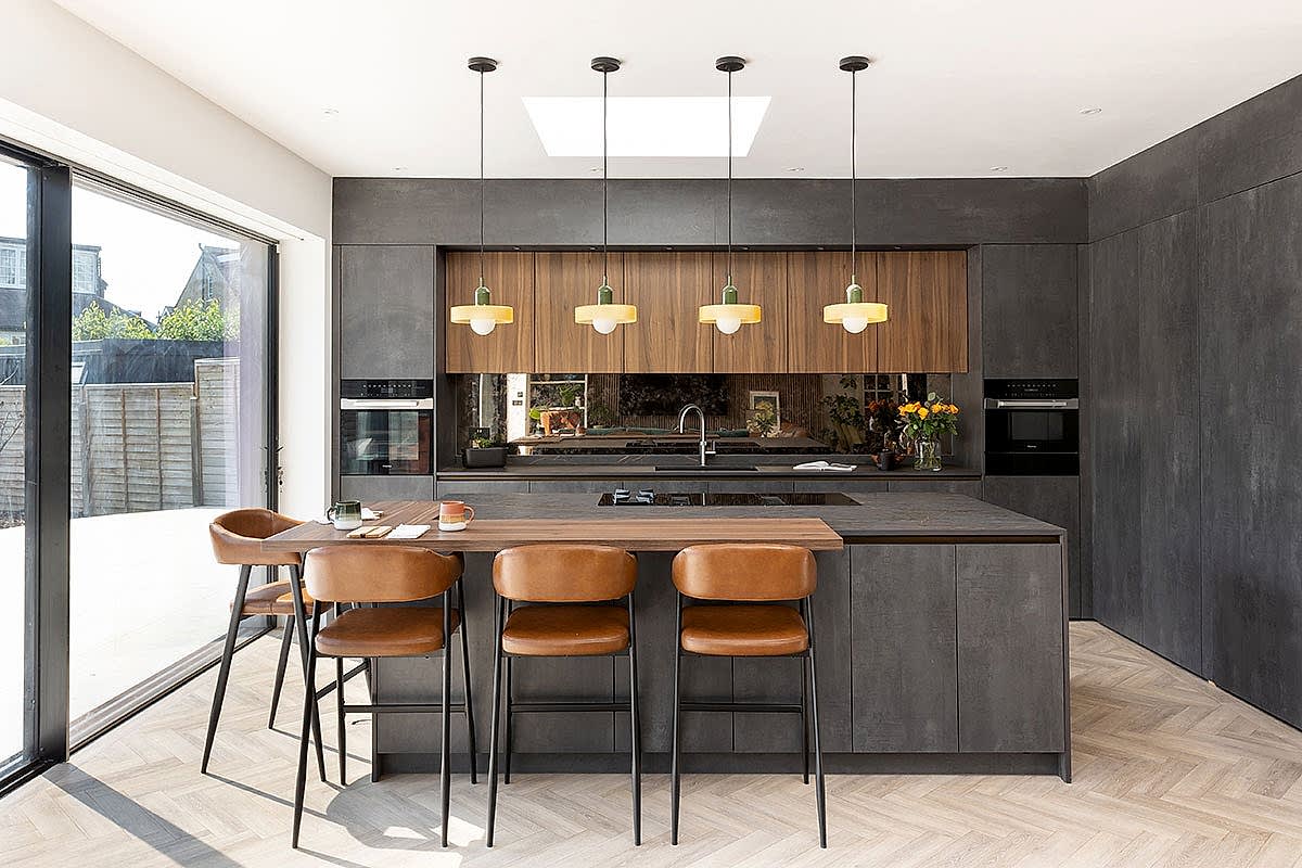 We were commissioned to bring a contemporary touch to this charming 1930s family home in Ealing. Central to the project is a spacious new kitchen, dining, and living area created as part of a generous rear and side extension. The fully refurbished entrance hall retains key original features, blending classic character with modern functionality to create a welcoming, open space adorned with artworks inspired by the family's extensive travels. The newly designed master suite boasts an open, pitched ceiling and a striking oriel window seat, offering serene garden views and a sense of retreat.