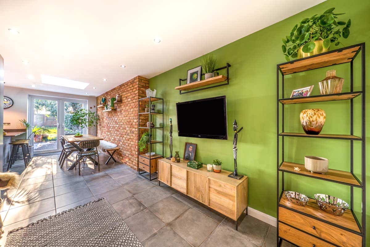 After adding a rear extension to the house to add a new kitchen/dining room, the clients needed some help in pulling together the various finishes and areas. They also wanted help to refurbish an existing TV room where we added new wall paint colour, additional lighting, side tables, area rug and accessories. It all works together really well now and looks transformed.