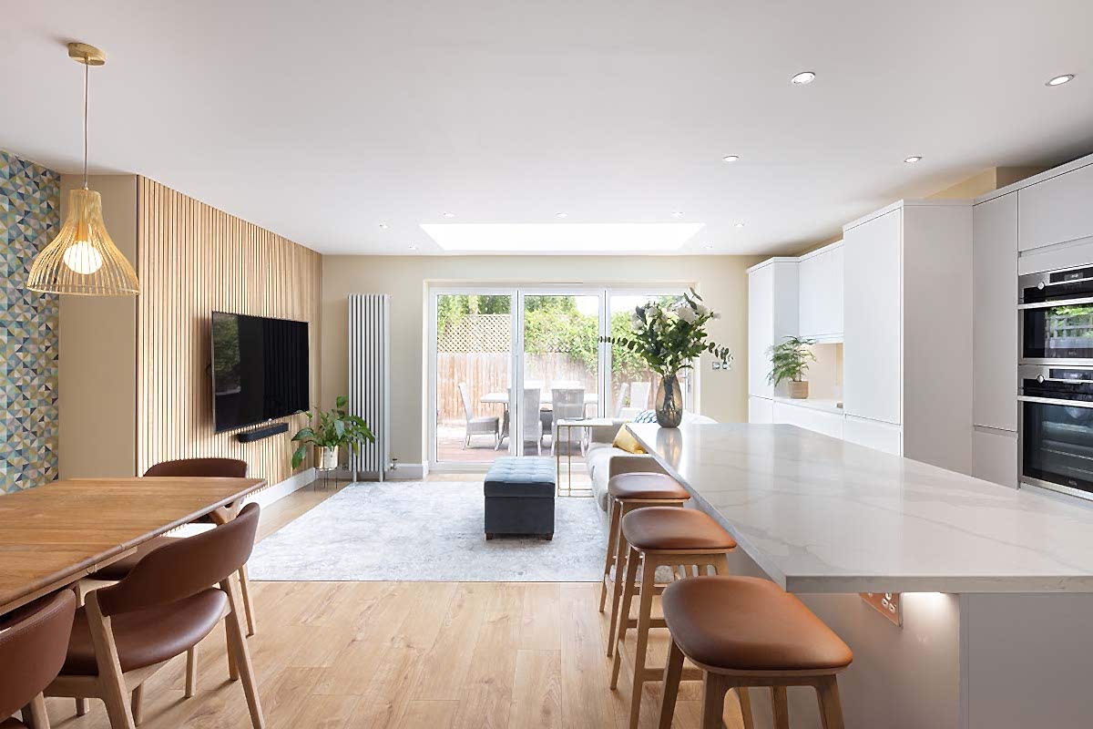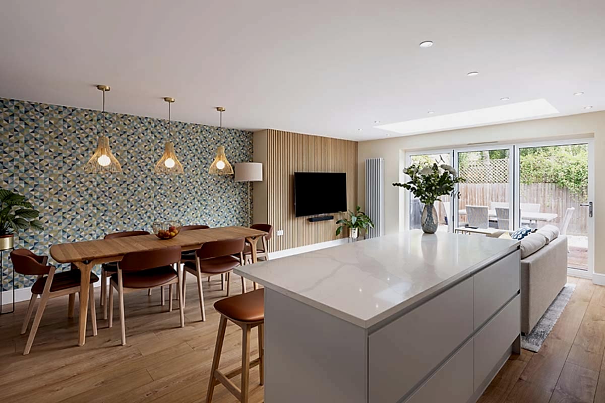 This project involved the complete redesign of a three storey modern family home in Chiswick. When the family moved in, although it was in great condition, it had all white walls with no character. We then set out to create a warm and inviting space – somewhere to relax, unwind and entertain guests. We infused the home with colour, pattern and texture while also improving lighting and layout.
